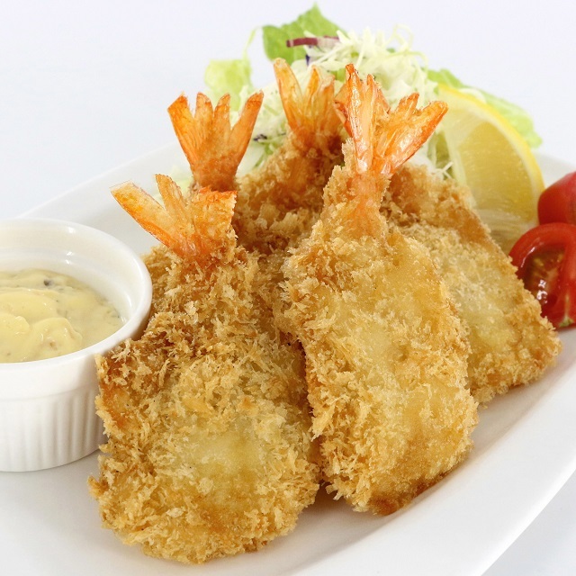 小粒の生パン粉を使用し、サックリ感を出す為にえびを開きました。背開きして横幅2倍で食べ応えも2倍♪コスパ最高のえびフライ。