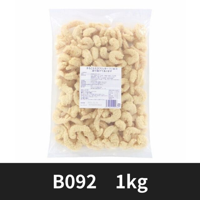 油調済みのえびフリッターです。既に揚げてあるので電子レンジでOK!再度、油で揚げると衣のカリカリとした食感が楽しめます。お好みでチリソースやマヨネーズソースをつけてお召し上がり下さい。めんどくさい調理はしたくない!という方にオススメです。