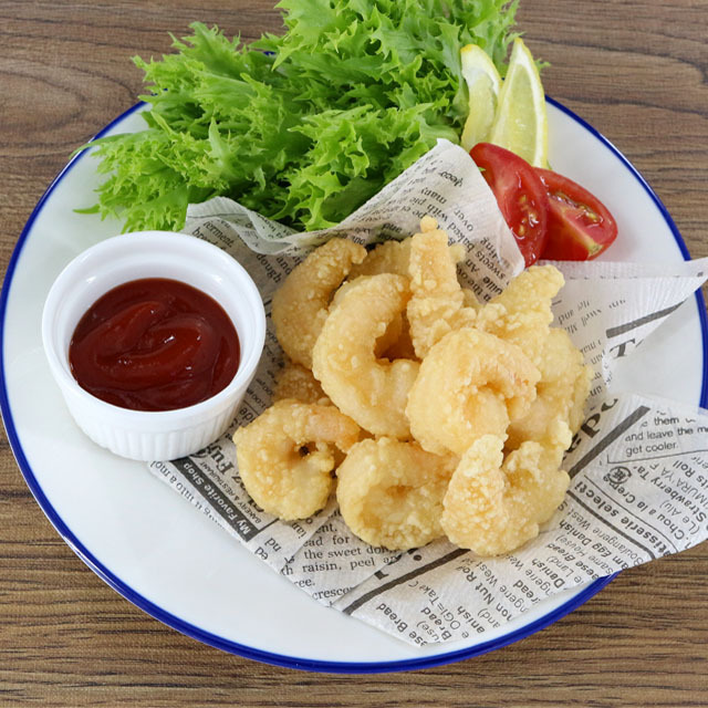 プリプリとしたえびに食感の良い衣をつけました。