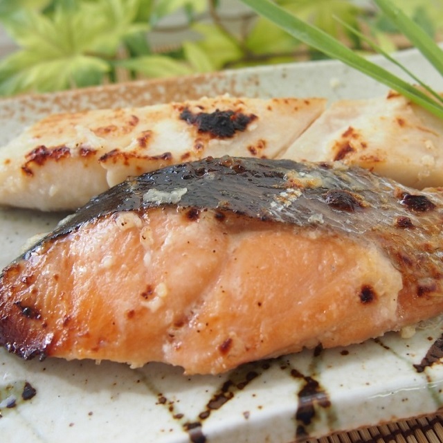 脂のり抜群の時鮭に純米大吟醸の酒粕と100年以上の歴史を持つ下関の岡村味噌の特製味噌が合わさった、林商店こだわりのオリジナル商品です。酒粕をキッチンペーパー等で少し拭き取ってから焼くと焦げにくくなります。